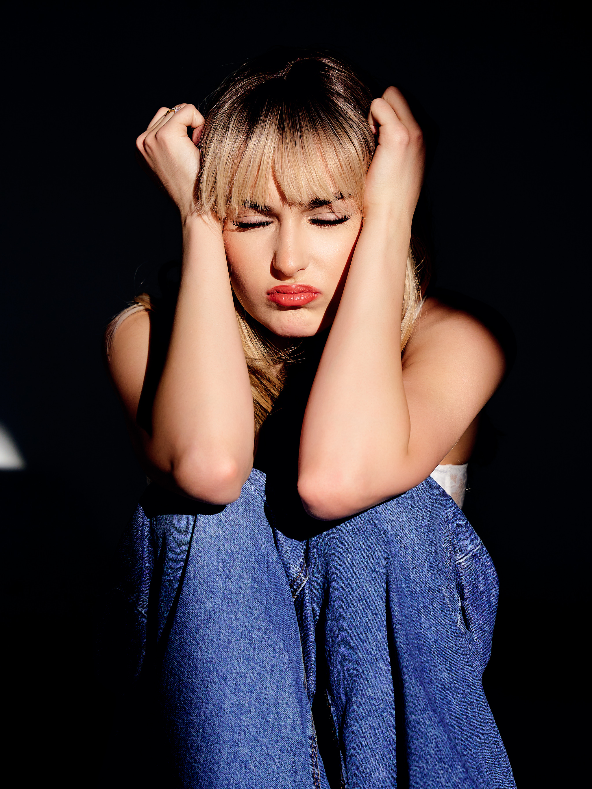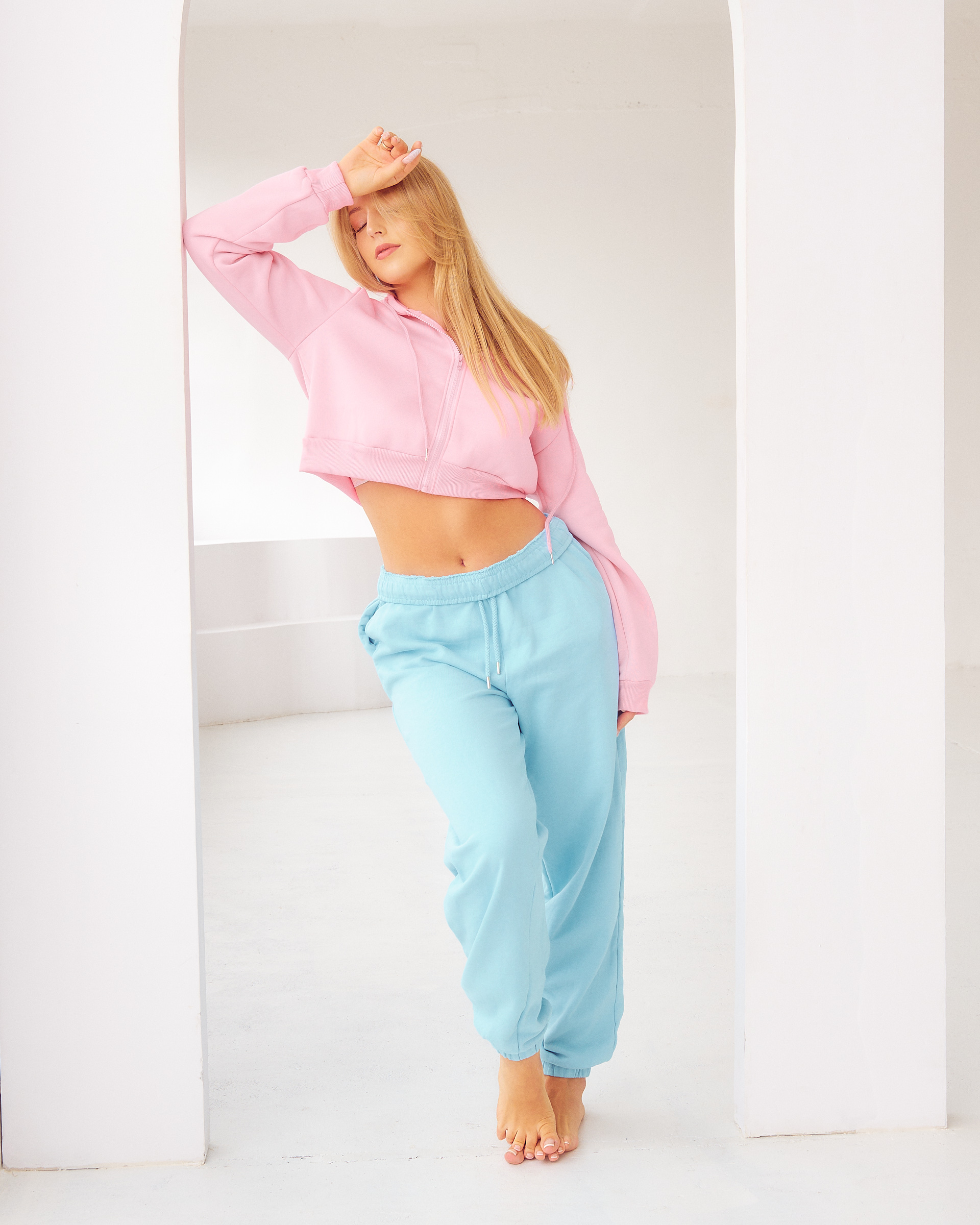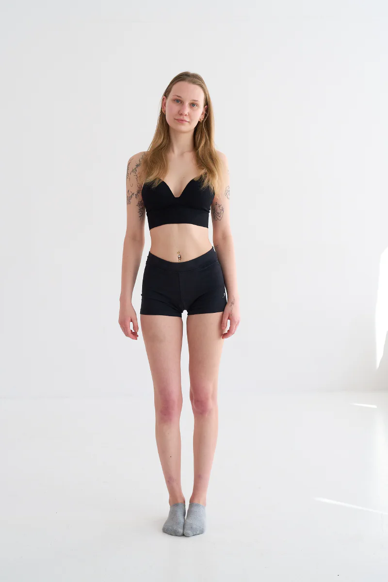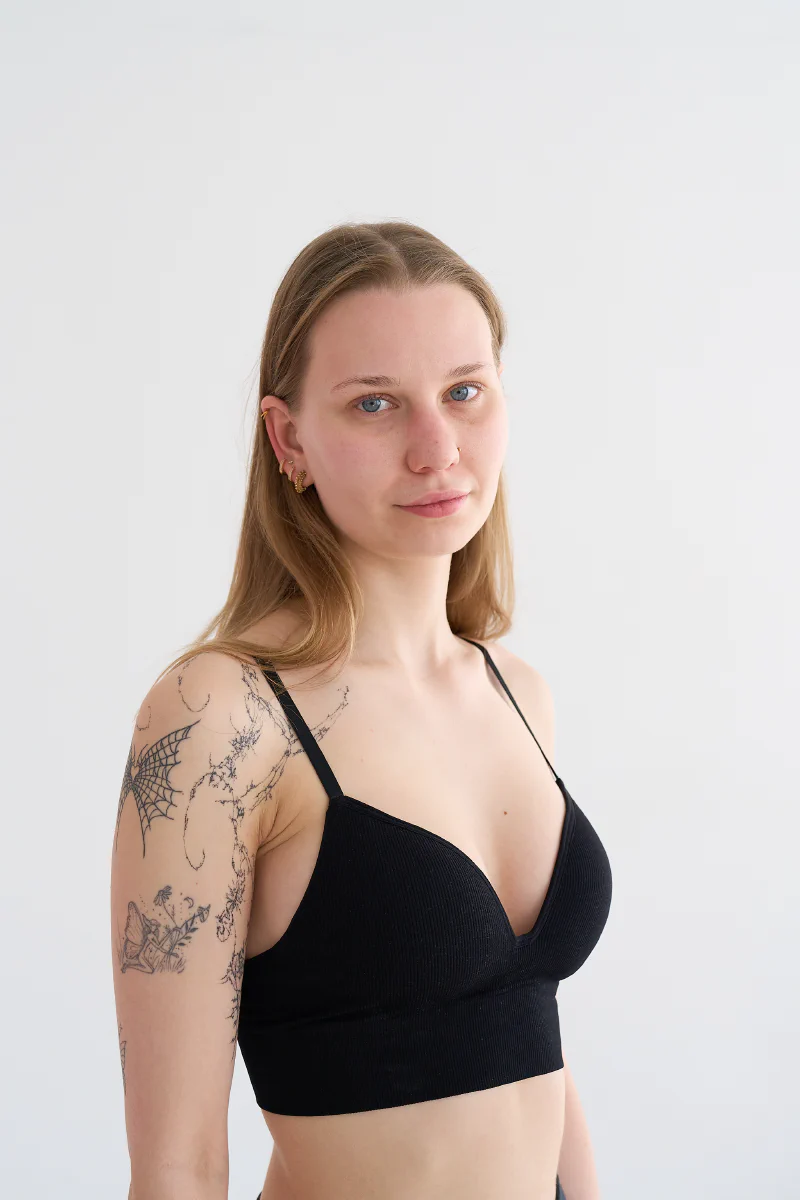 - Na sesję przyjedź w luźnych, nieodznaczających się ubraniach — i bezszwowej bieliźnie. Przy ujęciach w bieliźnie/bikini nie retuszujemy odcisków na skórze, więc warto unikać wszystkiego, co je zostawia — w tym gumek do włosów na nadgarstku